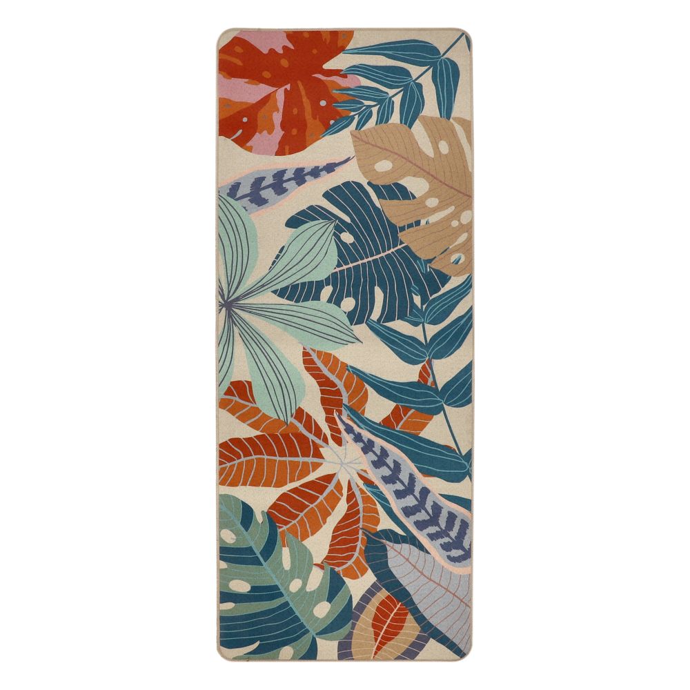 Tapete de poliéster con diseño estampado y base de caucho, ideal para usar en la cocina en la zona del fregadero.