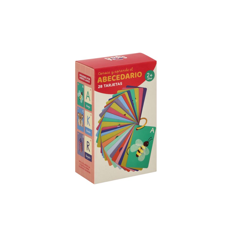 Set de 28 tarjetas didácticas con abecedario para que los pequeños fomenten el lenguaje, la audición, el pensamiento lógico y la percepción visual. Ideal para mayores de 2 años.