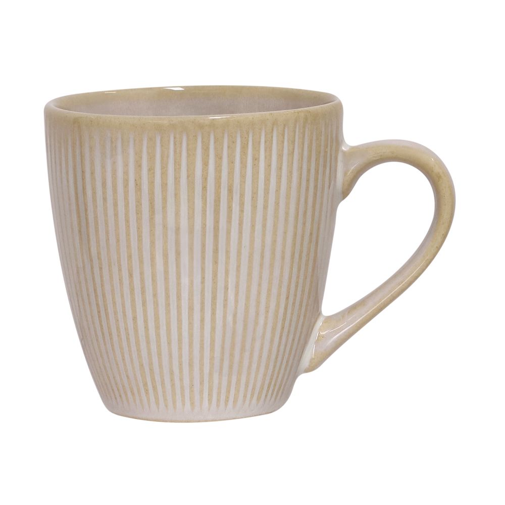 Taza con superficie decorativa y texturado. La colección tiene todas las piezas que necesitas para armar la vajilla completa. Tiene un tamaño de 13x9.5x9.5 cm.