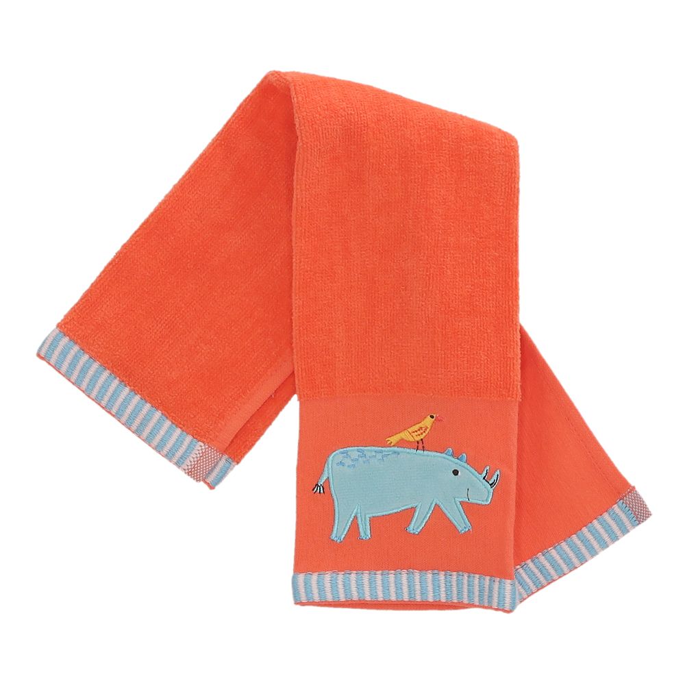 Toalla de algodón tejido velour con diseño bordado infantil. Tiene un tamaño de 30x45 cm.