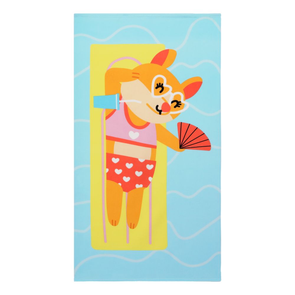Toalla de playa infantil con diseño estampado. Hecha de microfibra. Cuenta con un tamaño de 70x140 cm. Tiene certificación Oeko-Tex.