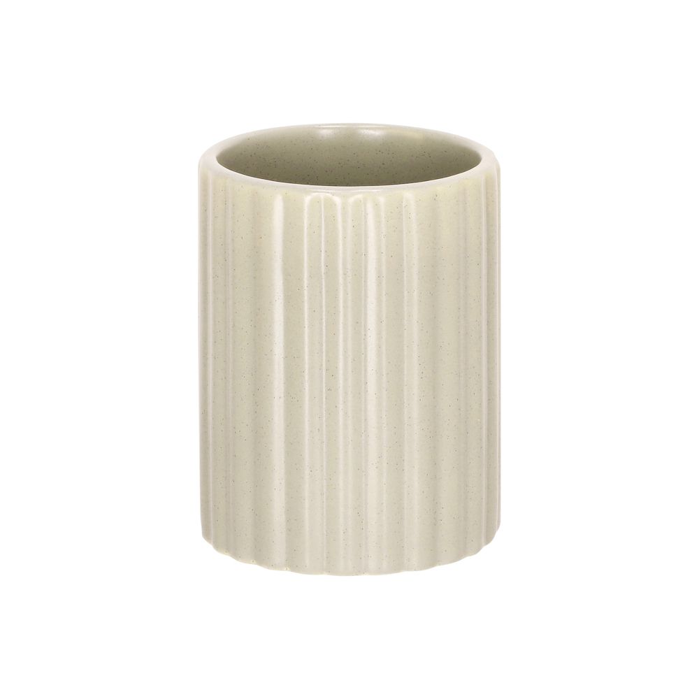 Vaso de resistente y elegante cerámica para poner cepillos de diente y otros artículos del baño. Tiene un tamaño de 7.4x11 cm.