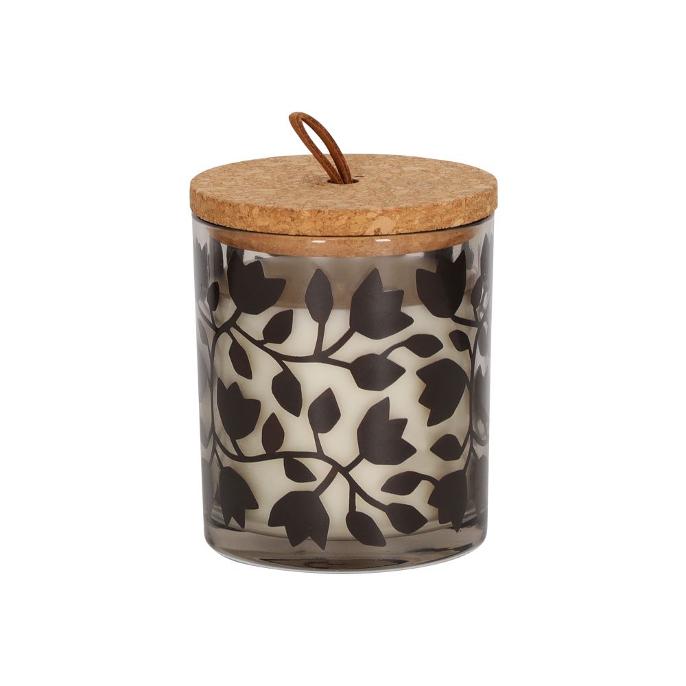 Vela de vidrio y tapa de corcho vainilla coco 8x9 cm