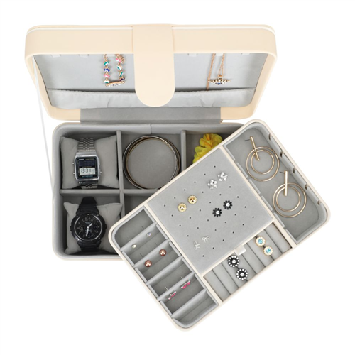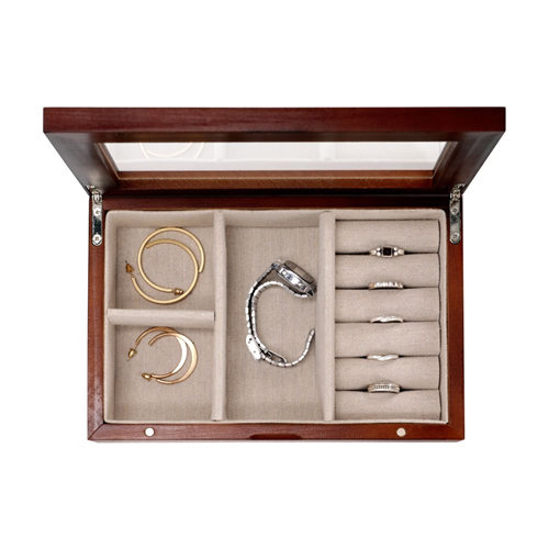 Organizador de joyas de plástico y bambú 14x14x5.5 cm