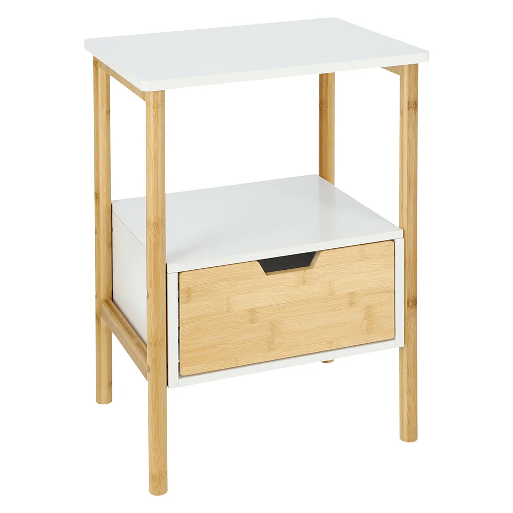 Mesa Auxiliar de Bambú con Repisa y Cajón 40x30x60 cm