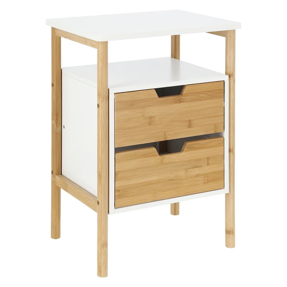 Mesa Auxiliar de Bambú con Repisa y 2 Cajones 40x30x60 cm