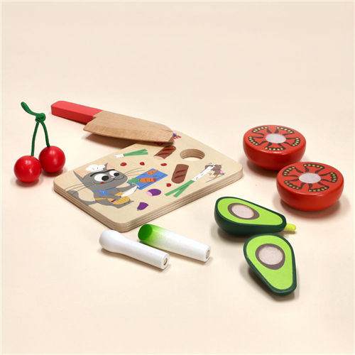 Balde con frutas y verduras de madera